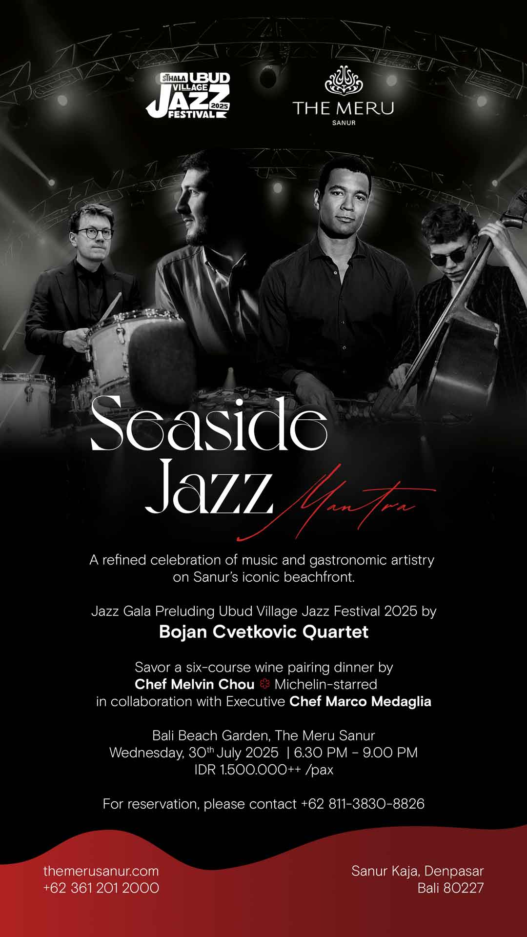 An exclusive evening of soulful live music and refined culinary artistry, brought to you by The Meru Sanur, as a special prelude to the Ubud Village Jazz Festival 2025.