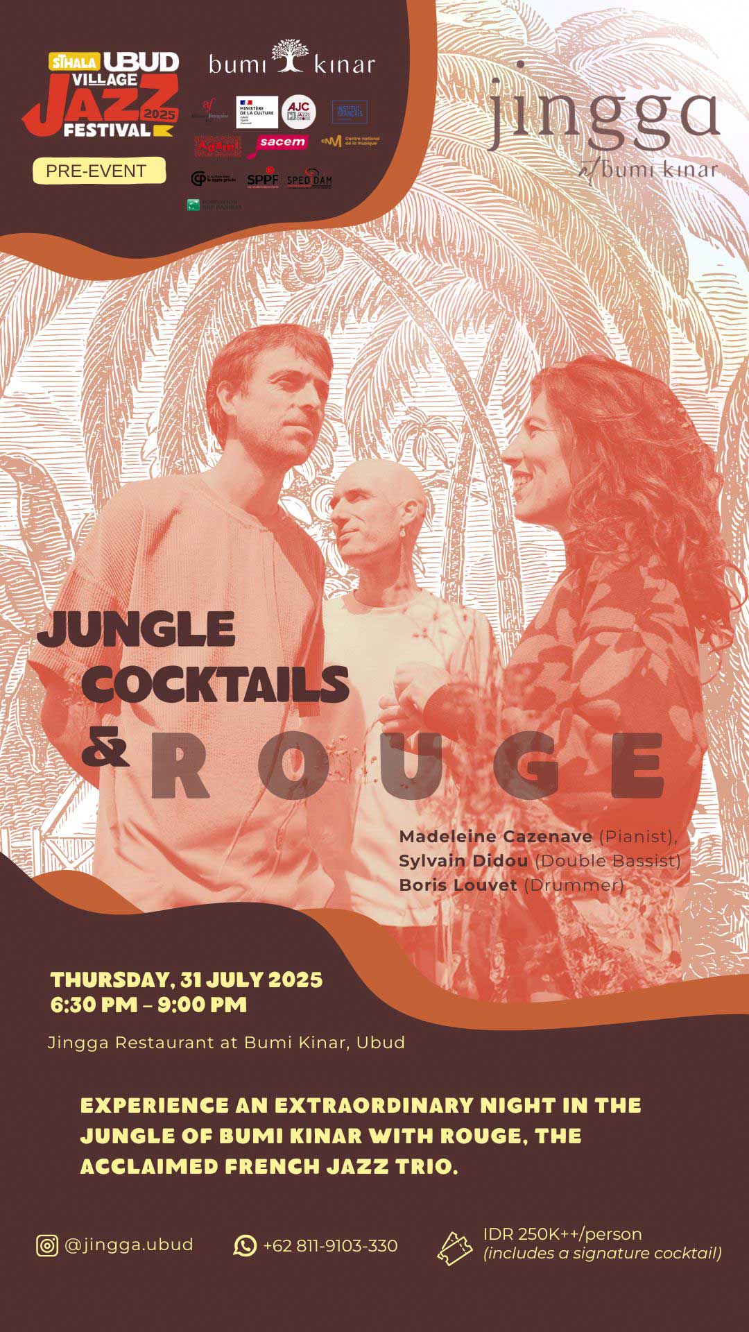 Experience an extraordinary night in the jungle of BUMI KINAR with ROUGE, the acclaimed French jazz trio.
